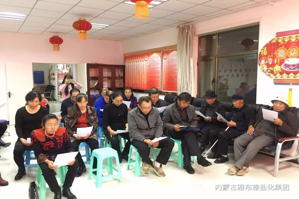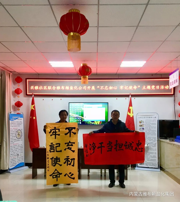 为扎实推进“不忘初心,牢记使命”主题教育深入开展,1030日晚8点,内蒙古雅布赖盐化集团公司企管党支部、雅布赖镇兴雅社区党支部联合开展“不忘初心,牢记使命”主题党日活动。社区党员、部分退休(内退)在家党员及盐雕工作室和企业管理部全体工作人员积极参加了此次活动。